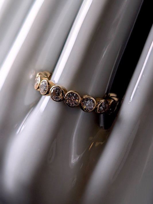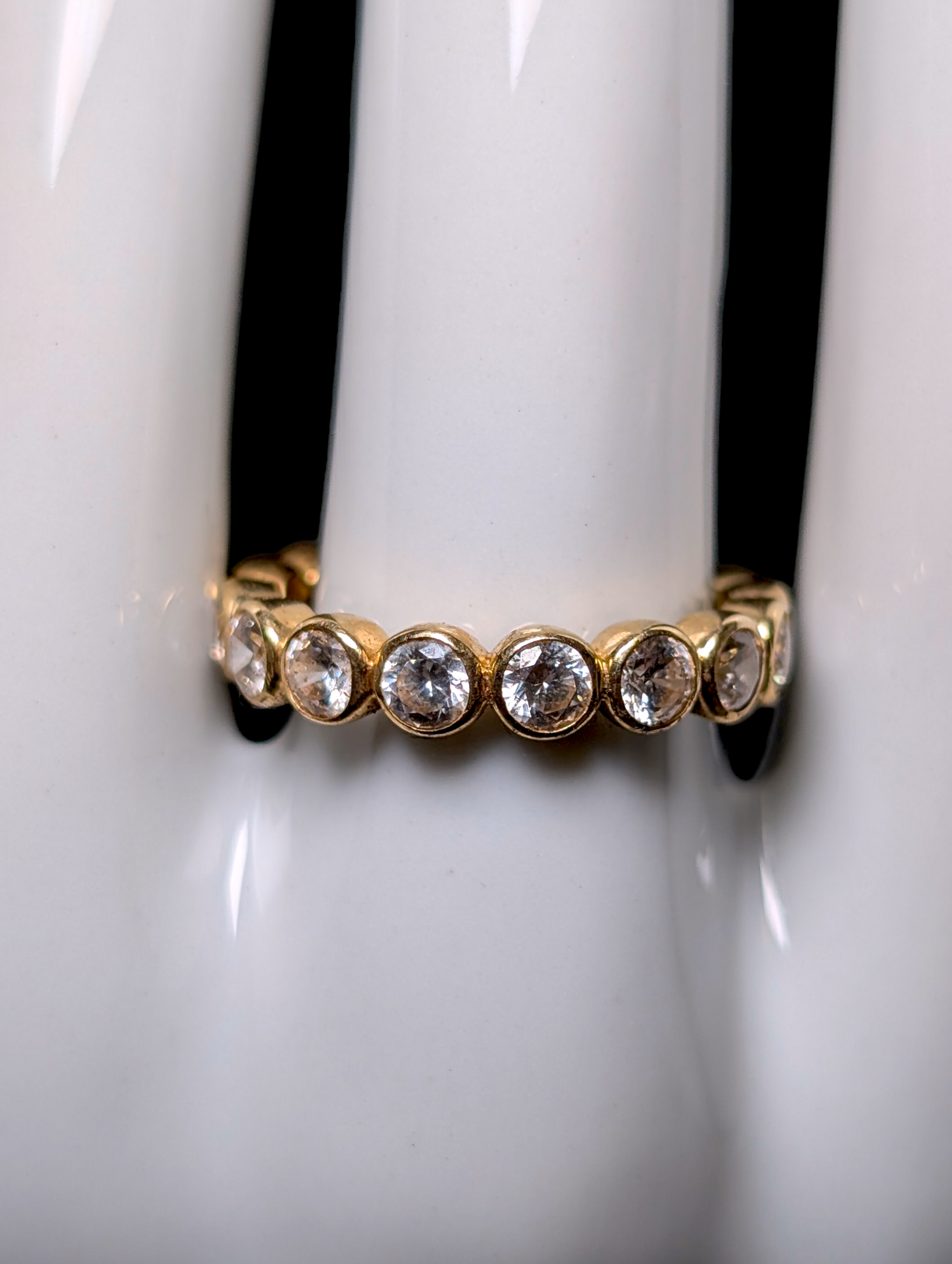 Vintage Designer Heng Ngai 14kt Solid Yellow Gold Simulated White Diamond Eternity Band Ring