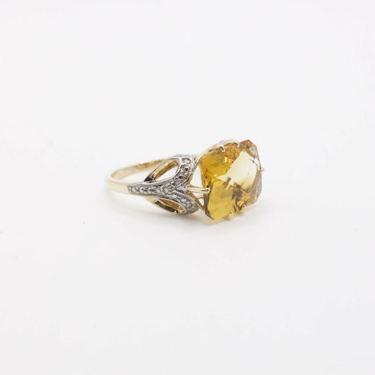 Vintage Designer Clyde Duneier Citrine and Diamond Ring In 10K Yellow Gold