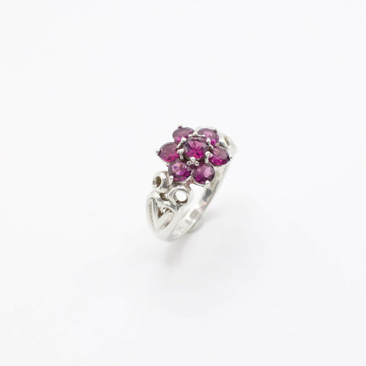 Vintage Floral Garnet Ring In Sterling Silver