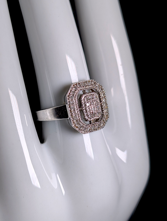 Vintage Step Cut Out Design Verified Genuine Diamond Sterling Silver Engagement Ring