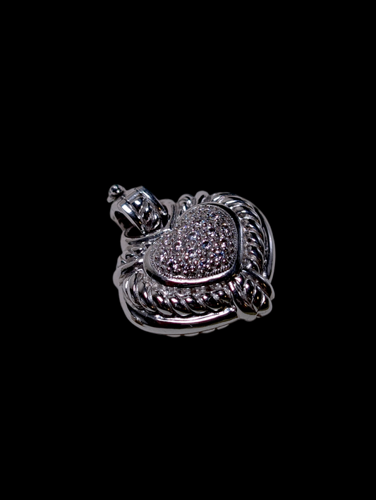 Vintage Judith Ripka Leather Braded Statement Necklace with Sterling Silver Heart Pendant and Original Box