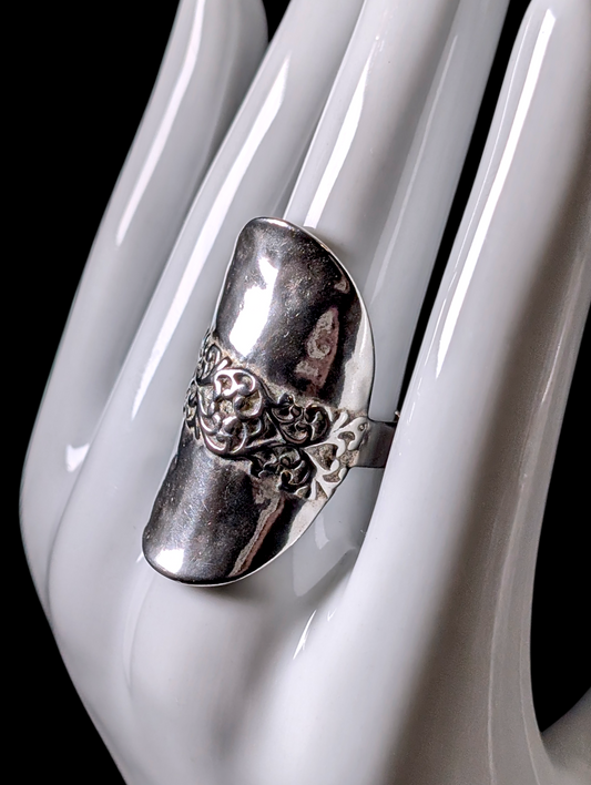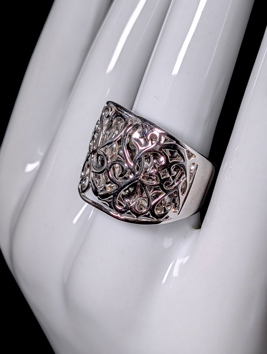 Vintage Unique Pop Out Heart Filigree over Hammered Sterling Silver Statement Ring