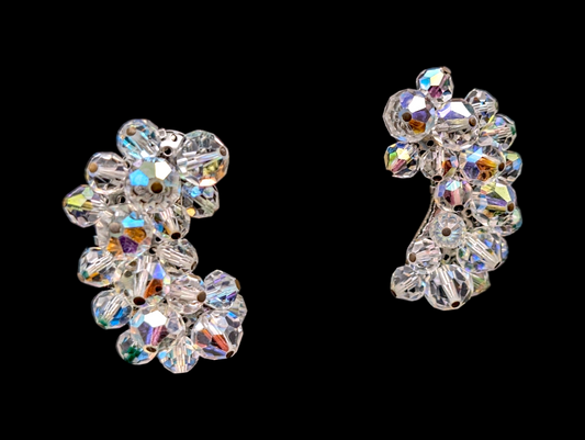 1950s Laguna Aurora Borialis Crescent Cluster Diamond Costume Earrings