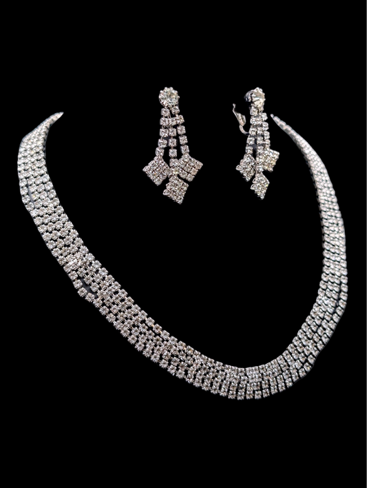 1950s Kramer Crystal Rhinestone Necklace and Earrings Set