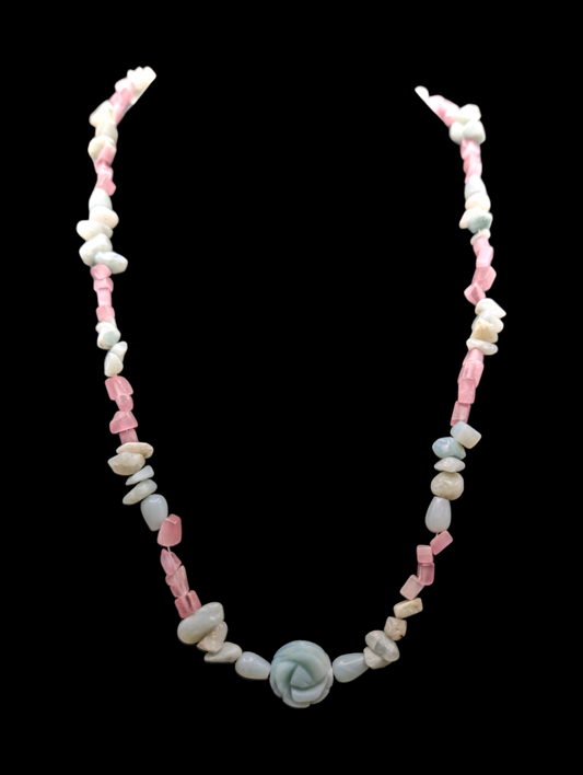 Vintage Mint, Peach, Pink and Cream Carved Semiprecious Gemstones Quartz Flower Necklace