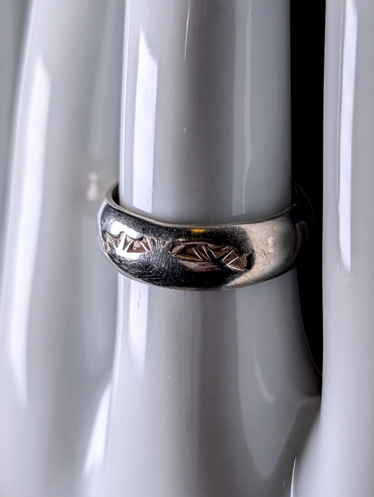 Vintage 6.25mm Wide Carved Sterling Silver Band Ring