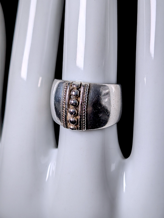 Vintage Studded Wide Domed Sterling Silver Band Ring
