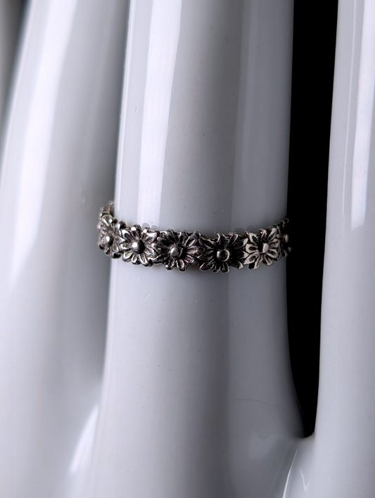 Vintage Daisy Flower Sterling Silver Band Ring