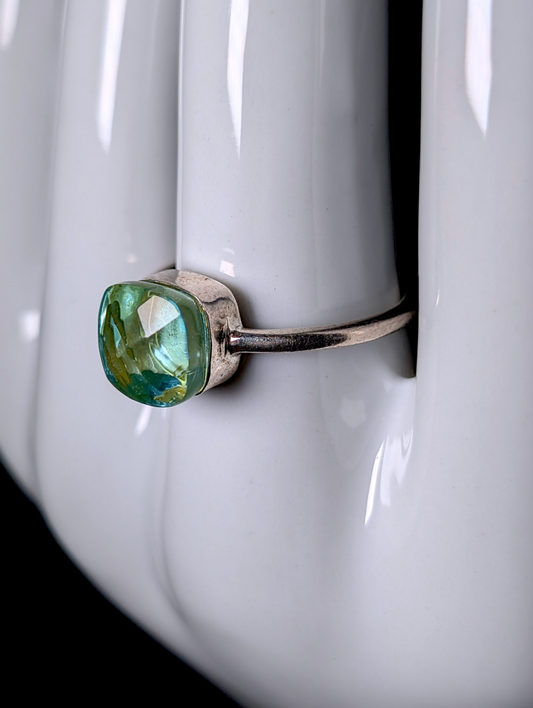 Vintage Designer Faceted Ocean Blue Crystal Sterling Silver Ring