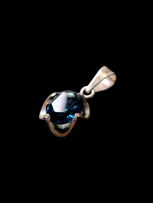 Vintage Solitaire Simulated London Blue Topaz Sterling Silver Pendant