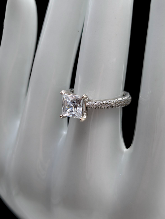 Vintage Princess Cut Solitaire Simulated Diamond Sterling Silver Vacation Ring