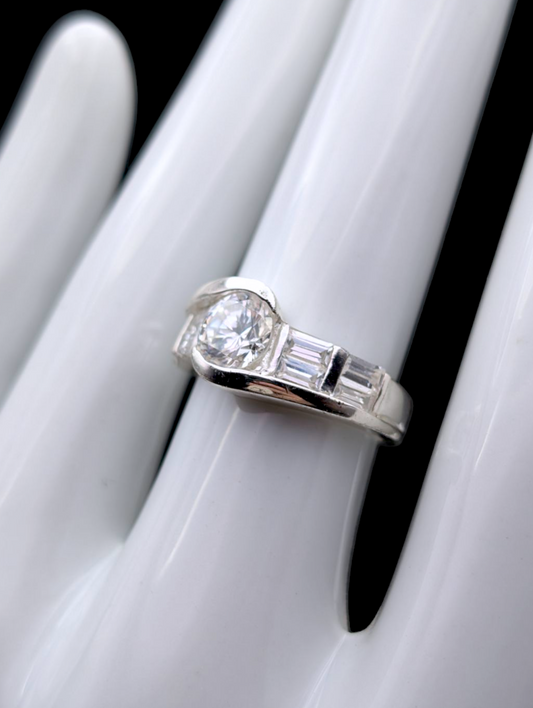 Vintage Bypass Semi-Bezel Set Simulated Diamond Baguette and Round Cut in Sterling Silver Statement Ring
