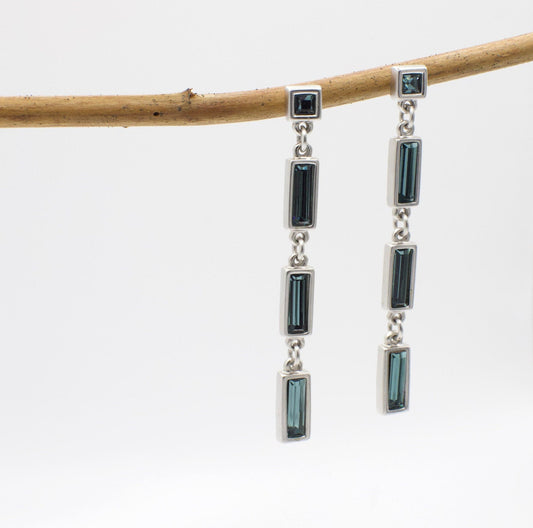 Vintage Genuine Blue and White Sapphire Sterling Silver Hoop Earrings
