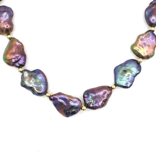 Vintage 14K Gold and Genuine Peacock Pearl Necklace and Dangle Earring Set