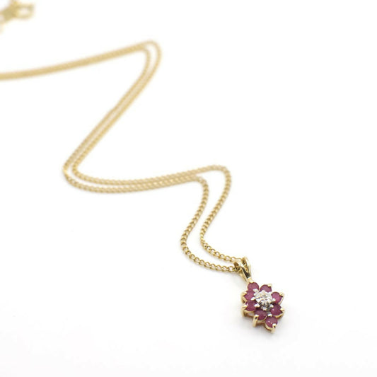 Vintage Genuine Diamond and Ruby Pendant Necklace In 14K Yellow Gold