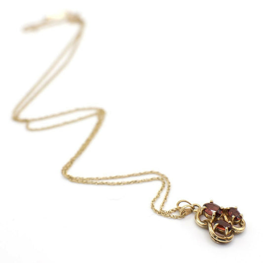 Vintage Genuine Triple Stone Garnet and 14K Yellow Gold Pendant Necklace