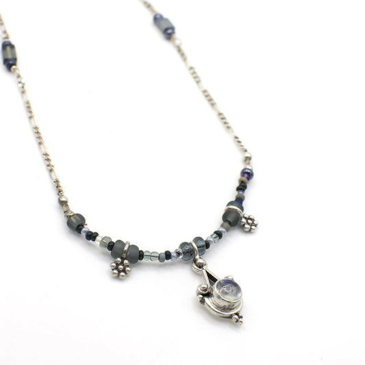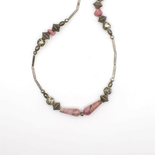 Vintage Rhodonite and Silver Beaded Necklace