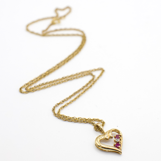 Vintage Genuine Diamond and Ruby Gold Vermeil Heart Pendant Necklace
