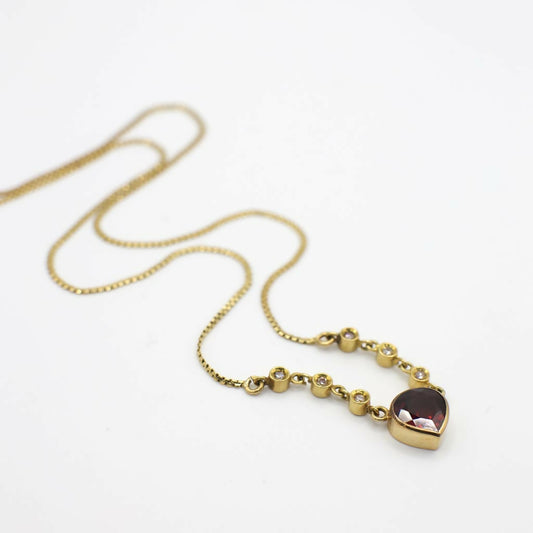 Vintage Italian Genuine Diamond and Pear Cut Garnet Necklace In 18K Yellow Gold