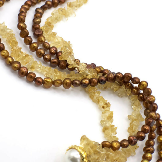 Vintage Gold Tone Genuine Pearl and Citrine Necklace