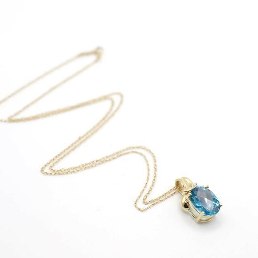 Vintage Genuine Diamond and Topaz Pendant Necklace In 10K Yellow Gold