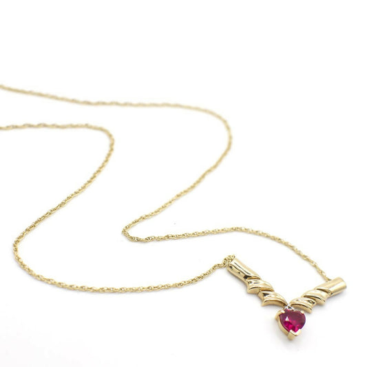 Vintage Genuine Pink Sapphire and 10K Yellow Gold Accented V Necklace