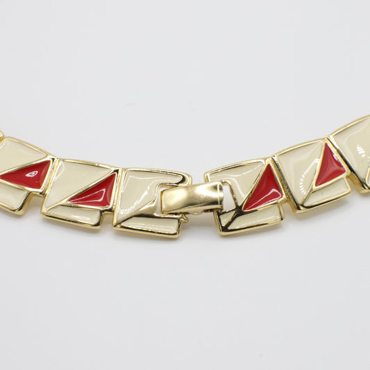 1970s-1980s RARE Vintage Trifari Kunio Matsumoto Designer Red and White Enamel Necklace