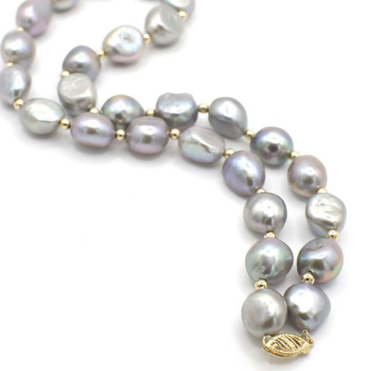 Vintage 14K Gold and Genuine Grey Baroque Pearl Necklace