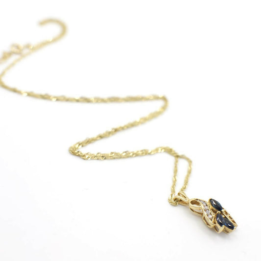Vintage Genuine Earth Mined Diamond and Sapphire Pendant Necklace In 14K Yellow Gold