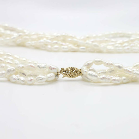 Vintage 14K Yellow Gold Six Strand Rice Pearl Necklace