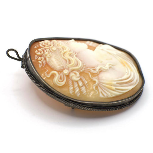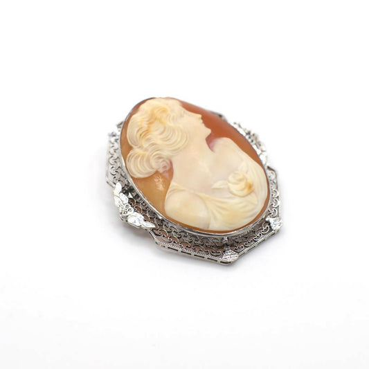 Vintage Mid Century Genuine Shell Cameo In Sterling Silver Filigree