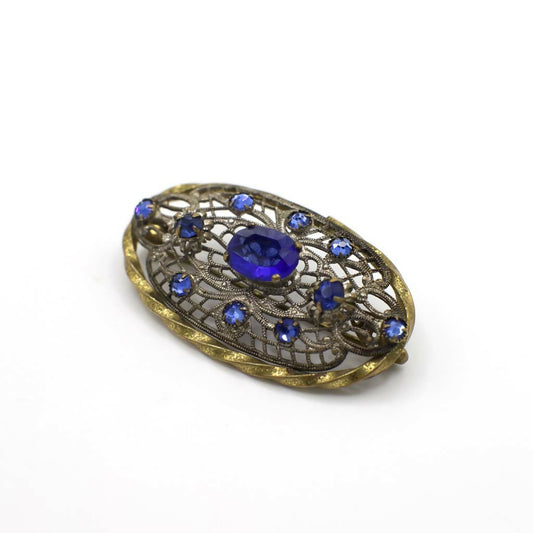 Antique Edwardian Paste Gemstone Gold Tone Brooch