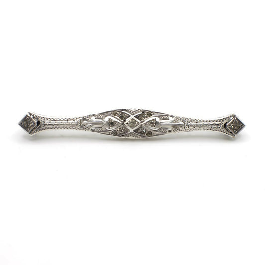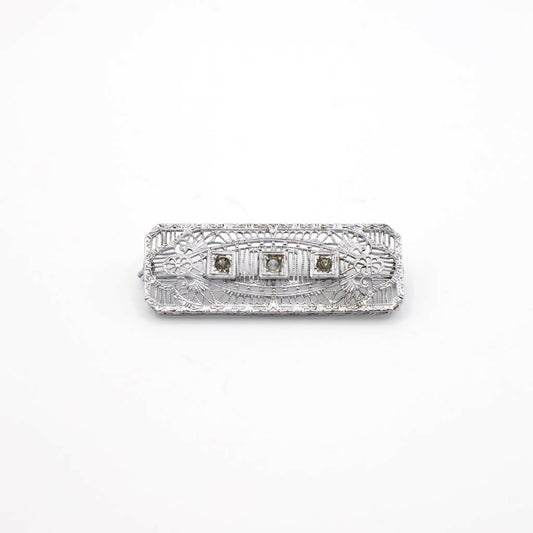 Vintage Art Deco Style Gemstone Sterling Silver Filigree Bar Pin