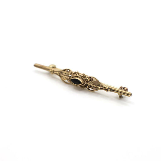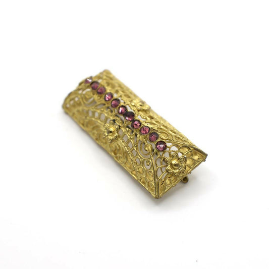 Vintage Rhinestone Gold Tone Filigree Cage Bar Pin