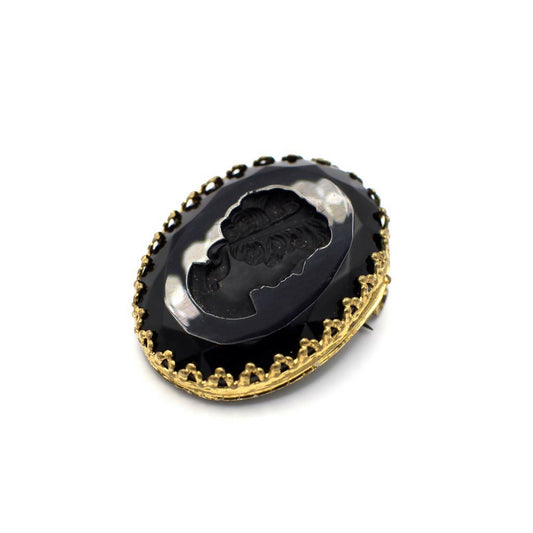 Antique Victorian Simulated Onyx Gold Tone Wrapped Cameo Pin