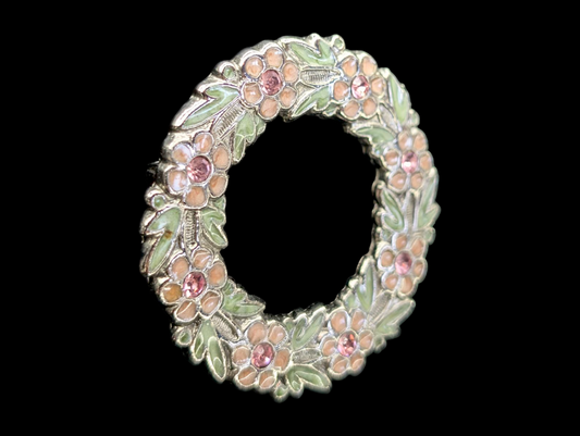 Vintage Pink Rhinestone Flower Crown Wreath Brooch Pin