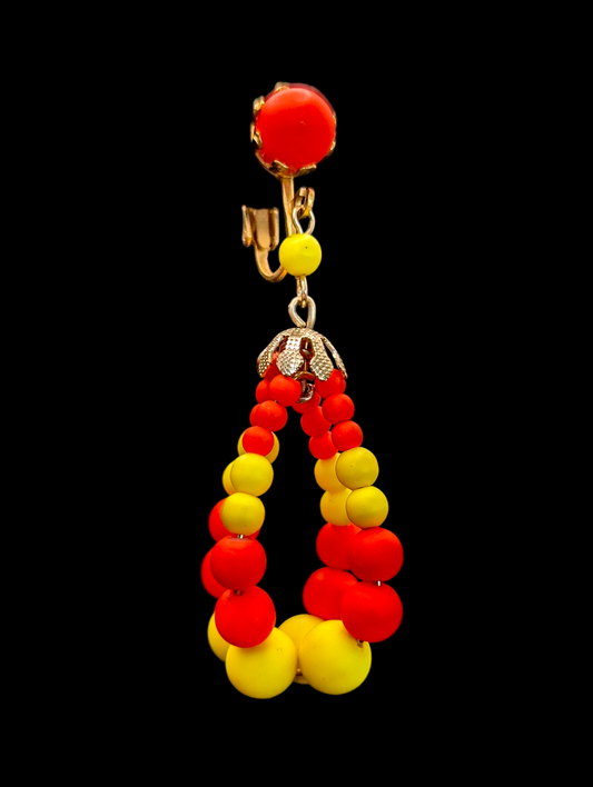 1960s - 1970s Mod Neon Yellow and Orange Beaded Tear Drop Dangle Earrings