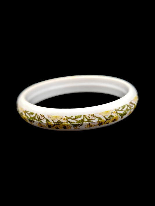 1960s - 1970s Yellow Flowers On White Celluloid Bangle Bracelet