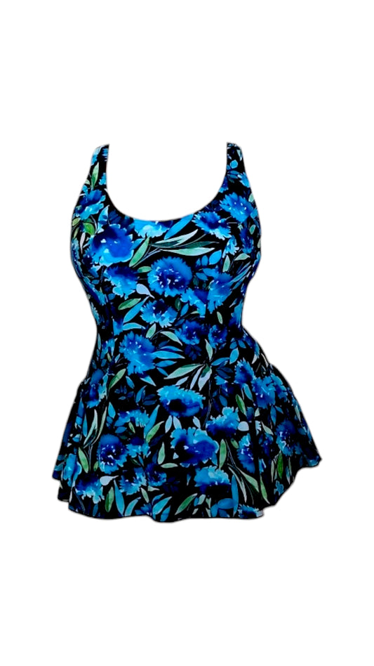 Vintage Blue Dandelion Fields Princess Cut Maxine of Hollywood Bathing Suit
