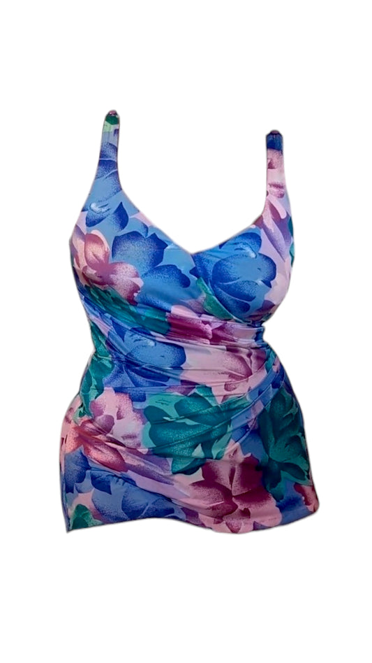 Vintage Pink Floral Rouched Perfect Fit by Roxanne Sheath Style One Piece Bathing Suit