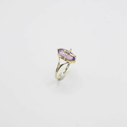 Vintage Genuine Diamond and Amethyst Cross Accented Ring In 10K Yellow Gold