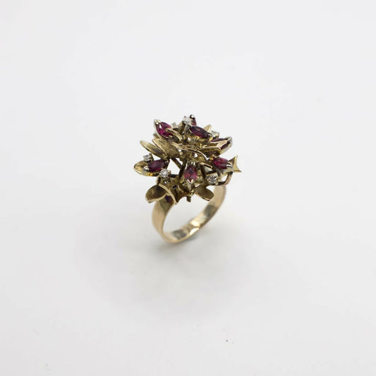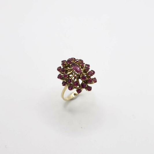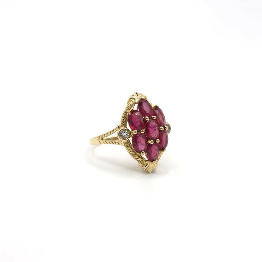 Vintage Genuine Ruby and 14K Yellow Gold Cluster Cocktail Ring