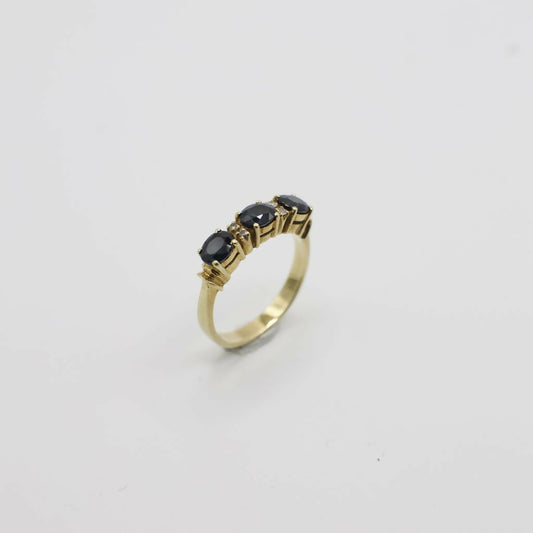 Vintage Genuine Diamond and Sapphire Ring In 14K Yellow Gold