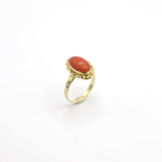 Vintage Genuine Coral and 18K Yellow Gold Ring