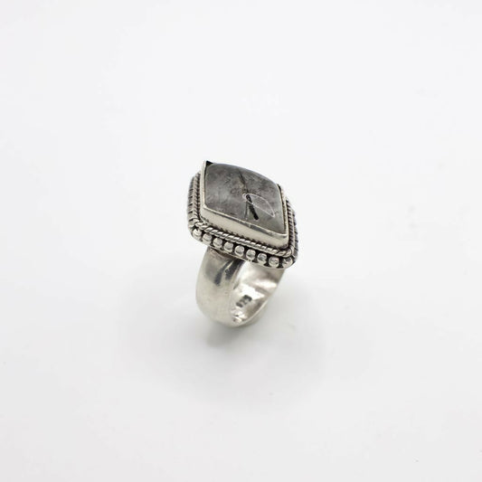 Vintage Genuine Rutile Quartz and Sterling Silver Accent Ring