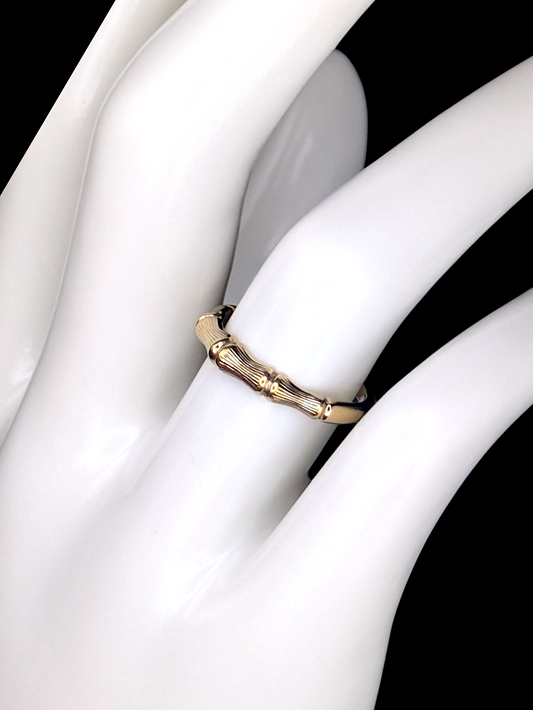 Vintage Avon Dainty Textured Bamboo Yellow Gold Toned Band Ring