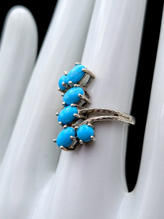 Vintage Cluster Cabochon Genuine Sleeping Beauty Turquoise Split Shank Sterling Silver Ring