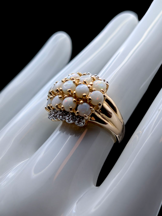 Vintage Genuine Opal and Diamond Accent Cluster 14k Gold Vermeil Statement Cocktail Ring