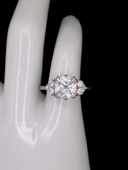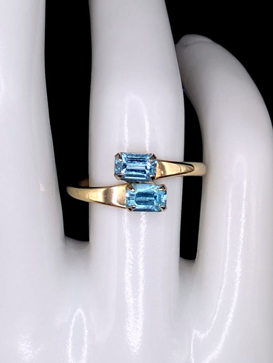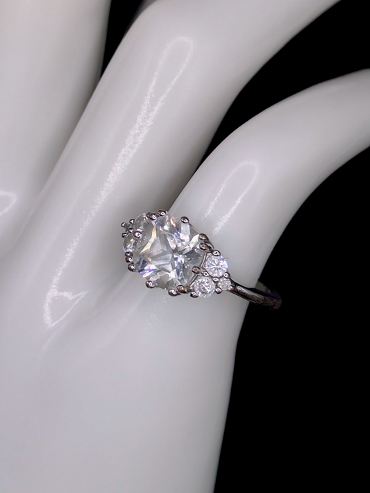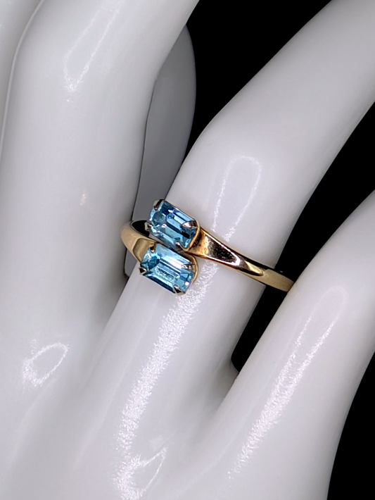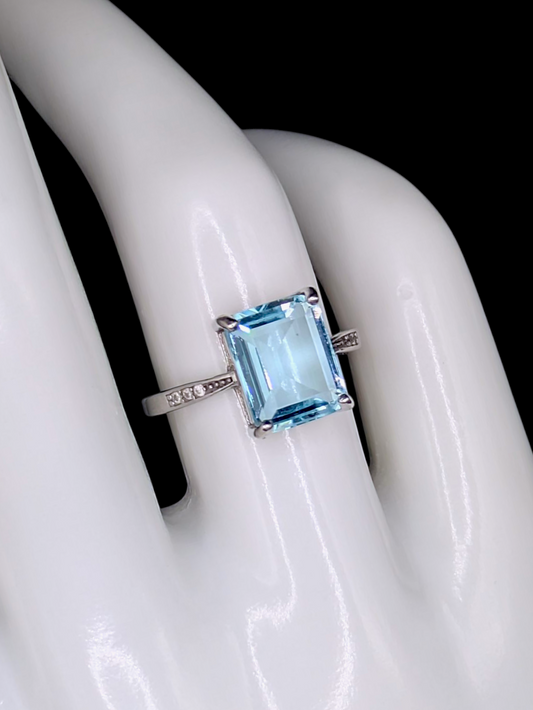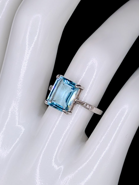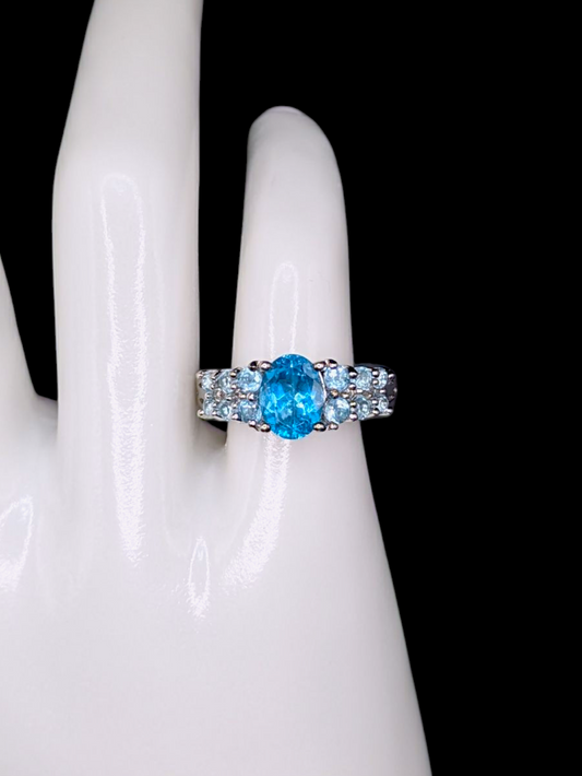 Vintage Six Stone Genuine Blue Apatite and White Zircon Sterling Silver Cocktail Ring