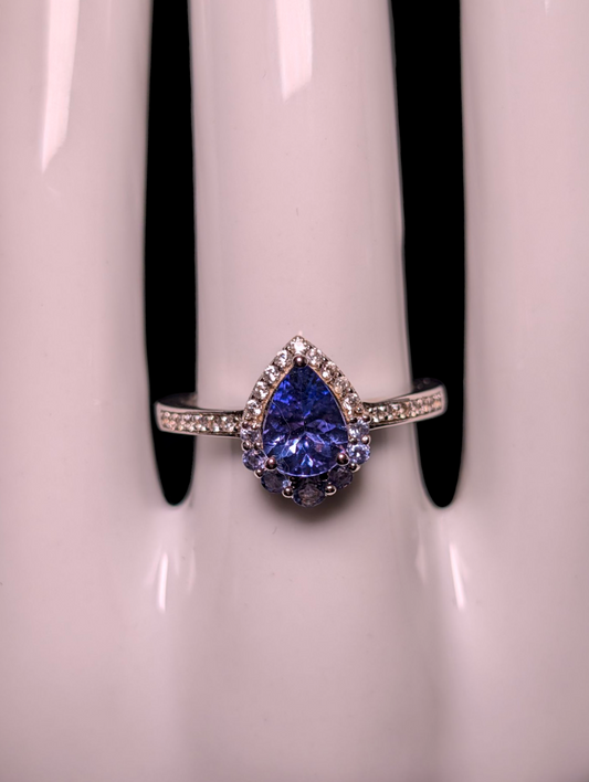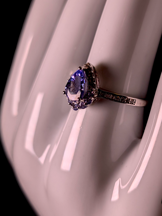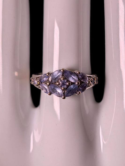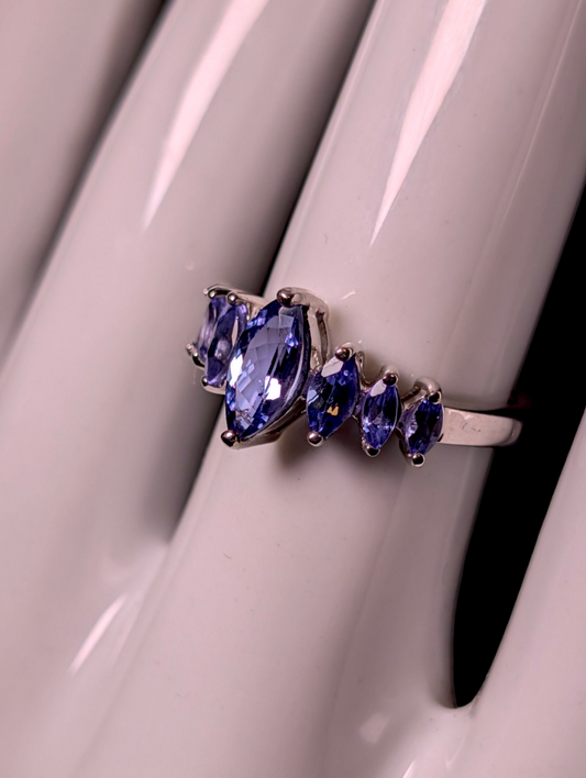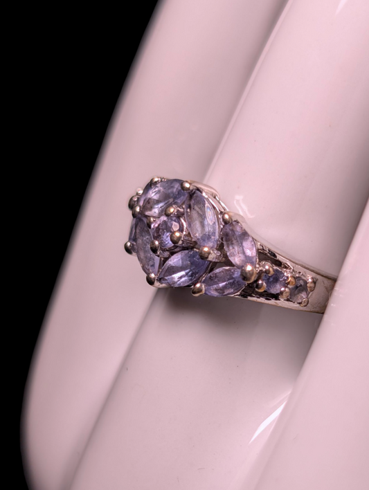 Vintage Waterfall Cluster Pear Cut Earth Mined Genuine Tanzanite Sterling Silver Ring